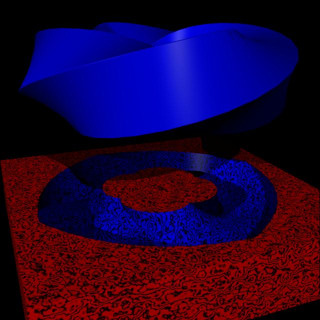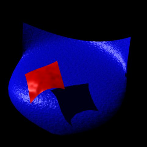 CSG Picture #3 The blue parametric object above has been cut out of the red block below.