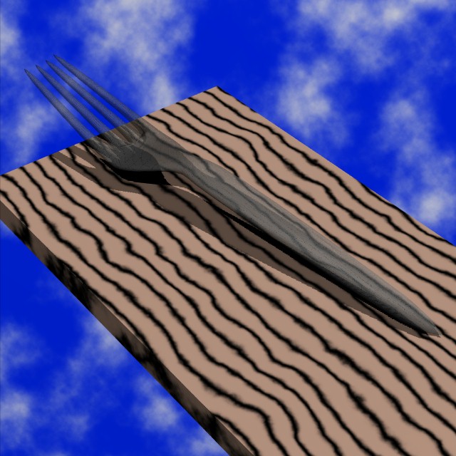 Transparent Fork This fork was rendered with surface transparency. The thickness of the object does not affect the amount of light that passes through it.